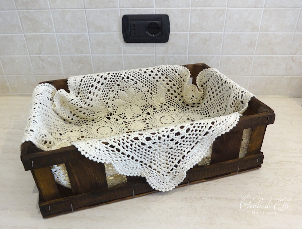 Cuando vi esta caja en la frutería, tan limpia y con madera tan nueva, me atreví a pedirla, le faltaba un listón por un lado que pude resolver gracias a las tablitas que tengo en casa y la grapadora, lijar y ya así la caja estaba terminada para mi ya que me gusta lo simple y natural