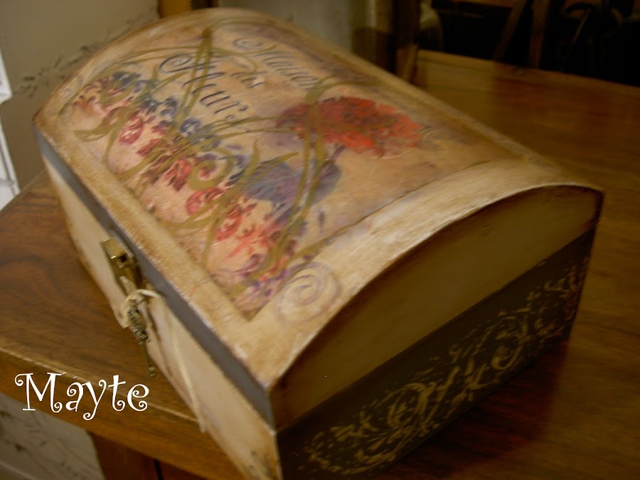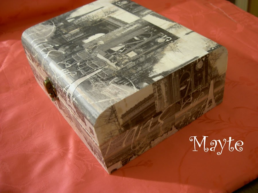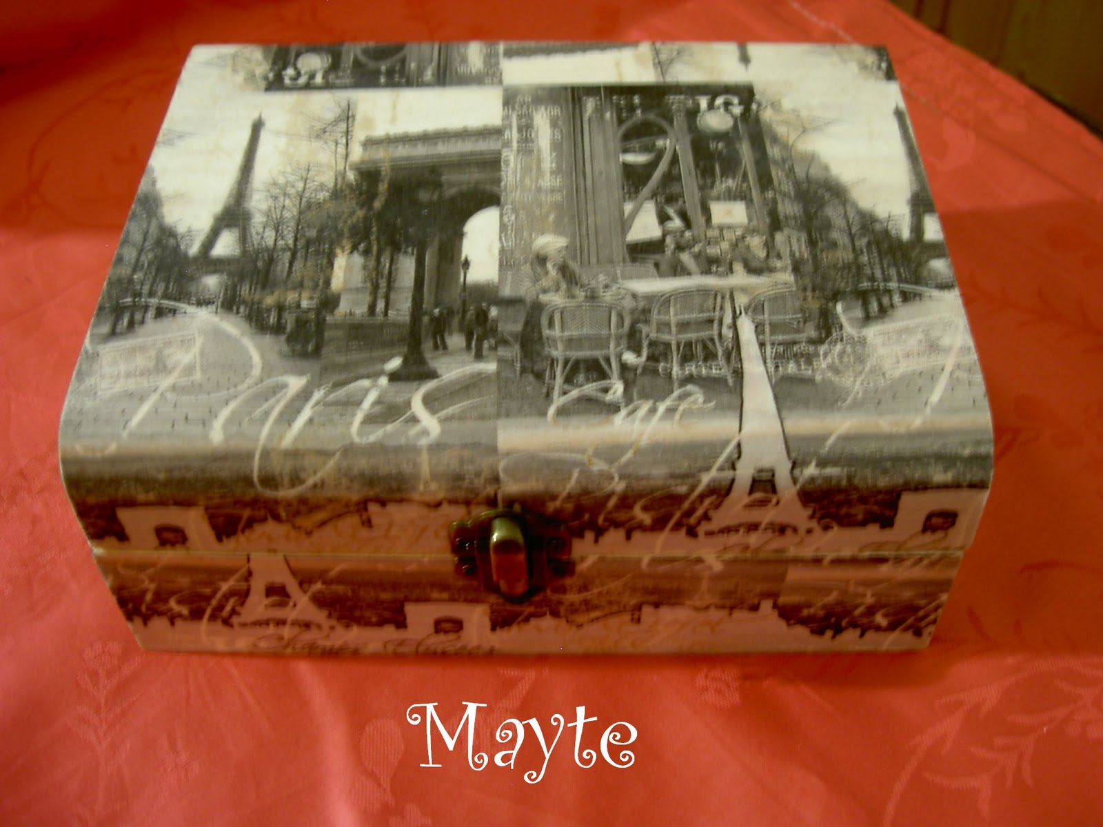 De nuevo aquí para mostraros nuevos trabajos...en este caso unas cajas de madera....la primera una caja decorada con decoupage con motivos Parisinos...esta hecha para un encargo de una amiga.. Esta con imprimación.. pintura acrilica en rosa vintage fornitura y adonros...terminada con pátina en blanco y cera el interior... De nuevo otra caja decorada con servilletas... el interior.... caj ...