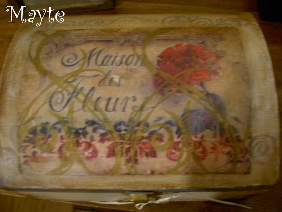 ,Aqui algunas cajas decoradas y en este caso pintadas con acrilicos ..esstuco una fornitura de madera en forma en forma de flor..y tambien lleva sellos estampados en los laterales.... La verdad que las fotos no hacen honor a esta caja.... es muy bonita.... esta tambien lleva sellos... las palabras MY HOME en un lateral Esta cajita la hice para la hermana de Agueda un encargito para ...