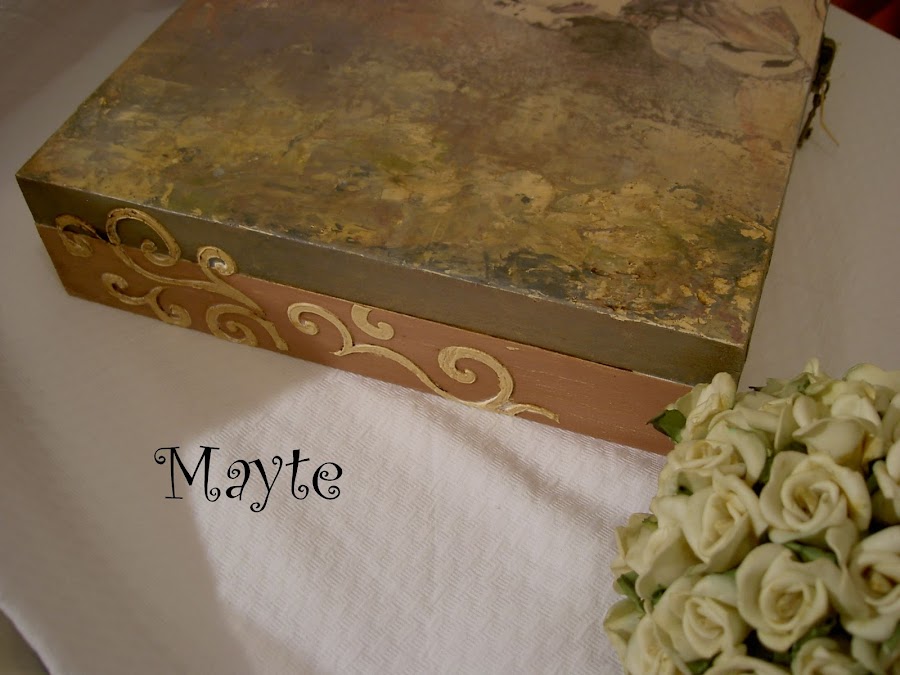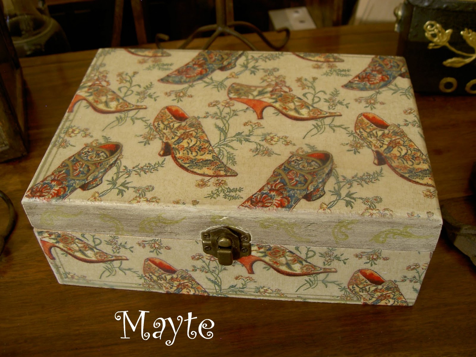 ¿Tienes una caja y no sabes como decorarla? Hoy te enseño unas cuantas que hemos decorado en clase. Las han hecho de todos los estilos Con aluminio... Pintadas a mano.... Con papel de decoupage y pintura.... con plomo, estuco y papeles.... con metal repujado..... con goma eva..... con siluetas de madera.... decapadas.... y muchas mas que os enseñaré en otro momento. Besos