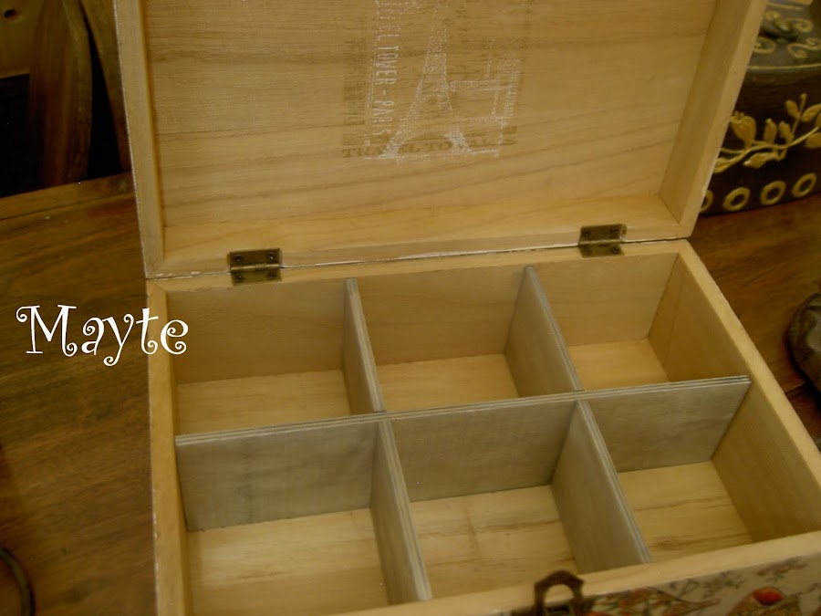 De nuevo aquí para mostraros nuevos trabajos...en este caso unas cajas de madera....la primera una caja decorada con decoupage con motivos Parisinos...esta hecha para un encargo de una amiga.. Esta con imprimación.. pintura acrilica en rosa vintage fornitura y adonros...terminada con pátina en blanco y cera el interior... De nuevo otra caja decorada con servilletas... el interior.... caj ...