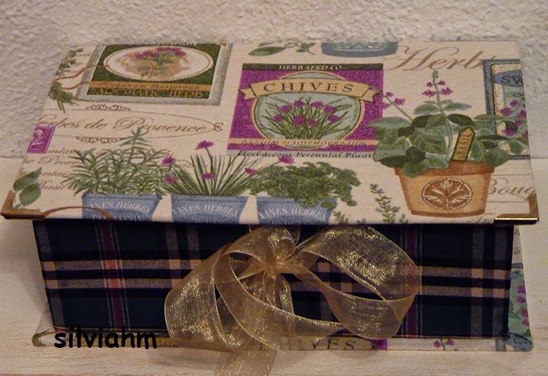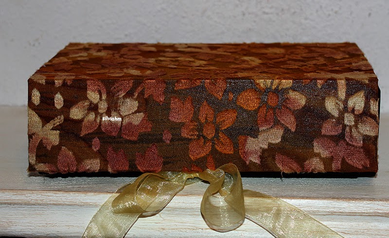 Ayer hicimos el primer taller de cajas libro en "Vilma stoned". Aprendimos a hacer una caja desde cero y posteriormente las forramos en tela. Quedaron preciosas. Y, como me quedé con ganas de hacer más, esta mañana me he puesto con éstas dos. Las cajas ya las tenía, así que he buscado algún retal y las he forrado, una de ellas con un lino con flores que quedó de una carpeta y la otra, que me encanta,un reciclado con una pasmina de terciopelo muy fino, combinada con negro en los laterales para que destaque el color dorado viejo de arriba.