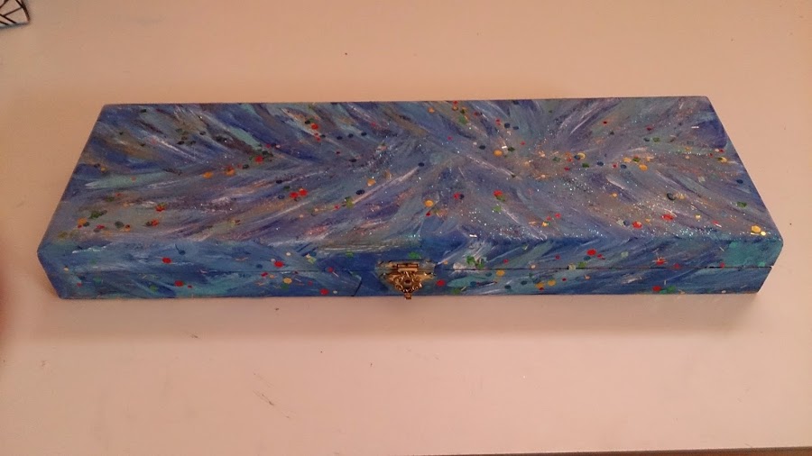 Esta es de una tableta de chocolate. Y con un poco de pintura acrílica y purpurina ha quedado original. Yo la uso para poner mis pinceles.
