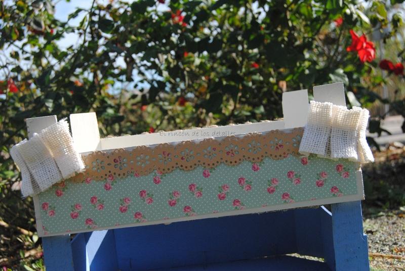 Pintadas con chalk paint blanco, llevan en los laterales papeles de scrapbook recortados a la medida.