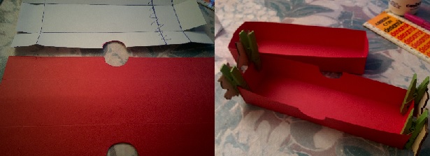 La plantilla en este caso la hice con papel reciclado a la medida del bolígrafo, una de las plantillas (la tapa) lleva dos milímetros más que la que forma la caja. Una vez que dibujé la caja en el papel la recorté y la pasé a la cartulina, doblando todas las líneas hacia el interior. Se hacen tres cortes en la parte más corta de la caja, se doblan las pestañas pequeñas hacia el interior, se da pegamento y se tapa con la parte central. Se hace la base de la misma forma. En la tapa se hacen unos semicírculos en el entro de los laterales para poder abrir y cerrar con más facilidad. Se decora y ya tenemos listas las cajitas para regalar con los bolígrafos. Como es de esperar, los regalitos les gustaron mucho y quedaron encantado con las cajas a las que ya les han dado otra utilidad que en realidad es de lo que se trata, porque somos como niños y lo que de verdad nos gusta son las cajas que contienen los regalos.