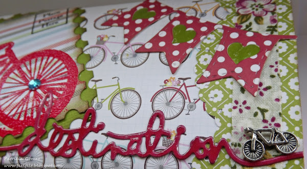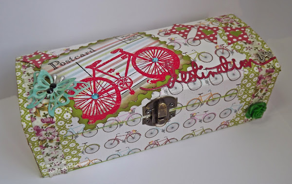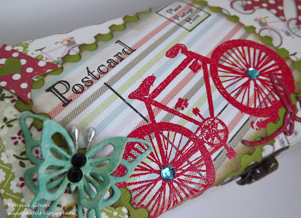 La bici es un sello de Pink Paislee NANTUCKET Scrapbooking Clear Stamps, embosado con polvos ZING Rouge.