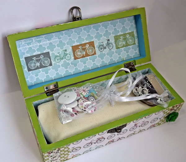 Partí de una cajita de madera sin tratar, a la que pinté primero, para poder forrar y decorar luego a mi antojo.