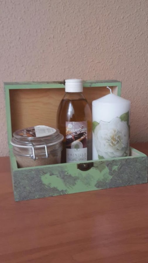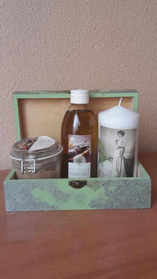 Se trata de una cajita decorada con decoupage a conjunto con una vela. Espero que os guste!!