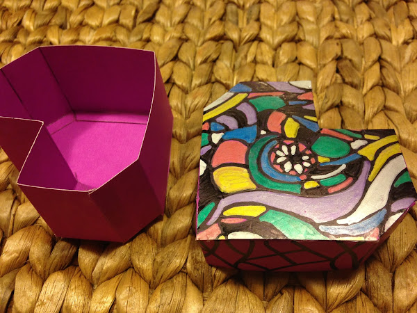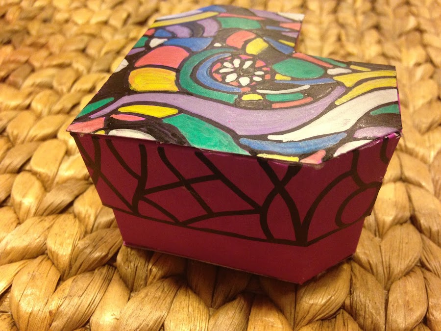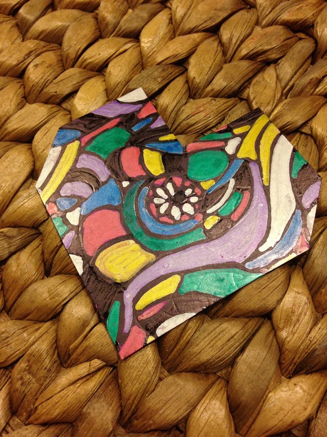 En el corazón y tira que van a formar la tapa de la caja, dibuja con un marcador negro unas lineas rectas otras curvas una mezcla de ambas para forma tu mandala.