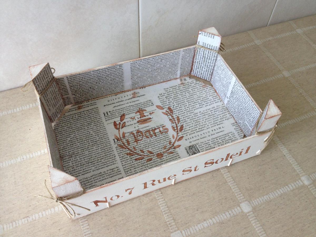 Empezamos con el decoupage, yo utilice un papel con detalles de periódico antiguo.