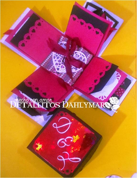 Se trata de un encargo que recibí de una enamorada : Una cajita explosiva con varias sorpresitas dentro.. Asi que siéntense bien cómodos si quieren ver todo el post!!