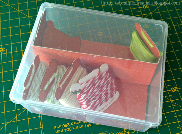 Entre otras cosas, tenía varios restos de Baker"s Twine un poco desorganizados. Acudí a mi caja de punto de cruz, y no me quedaban bobinas planas para enrollar los hilos...
