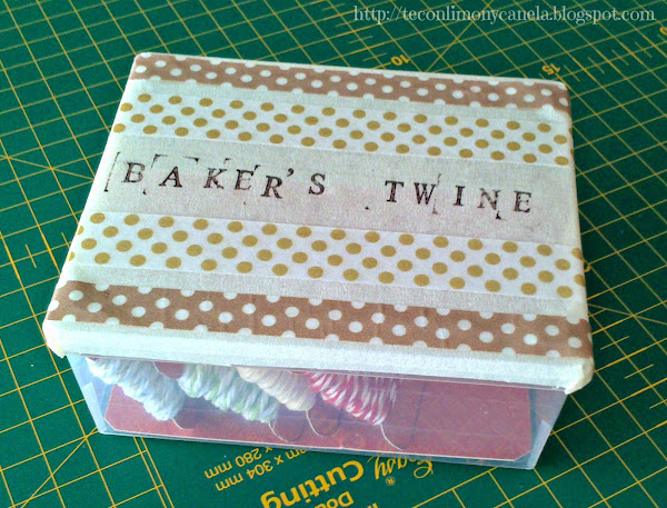 Si queréis se puede dejar la tapa sin nada, ya que al ser transparente nos servirá para ver los Baker"s Twine a la primera.
