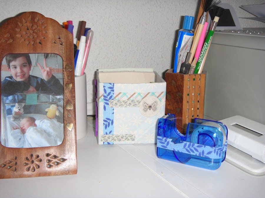 Ahora a lo que vamos, el post de hoy. Tenía esta cajita tan fea para guardar los post-it. Me daba pena tirarla, creo que la tengo desde que iba al colegio y me la traje en la mudanza de hace 12 años cuando me vine a vivir a mi casa. Pero la verdad es que el estampado se me hacía un poco... horroroso.
