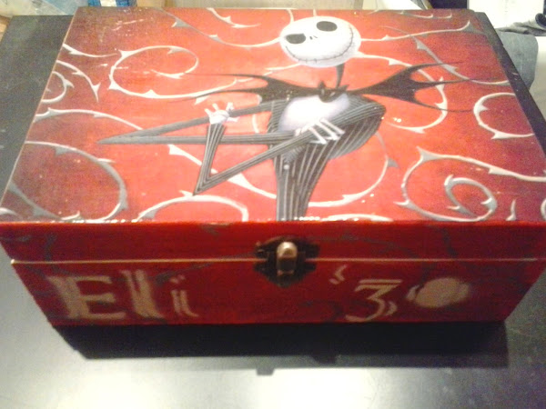 Hola a todo@s. Aquí os traigo otra cajita de pesadilla antes de navidad. Cuando entregué la de mi amiga, una compañera del trabajo se lo comentó a su pareja y me pidieron otra. Así que ya vamos por la segunda cajita de este personaje. Esta pintado con pinturas acrílicas y la imagen está puesta con la técnica del transfer. un saludo y feliz fin de semana!