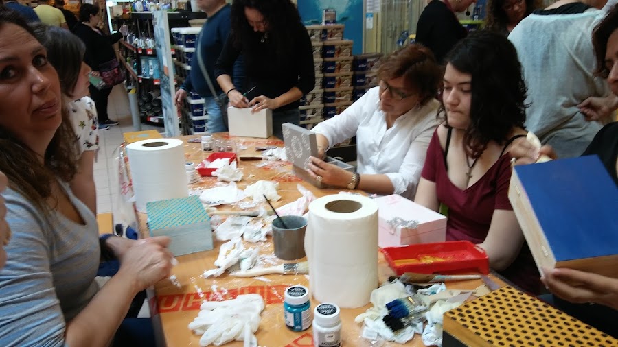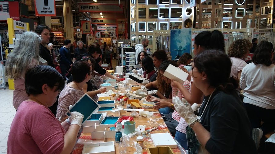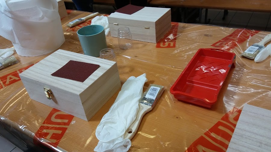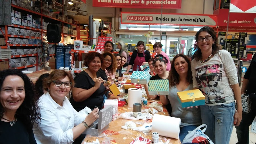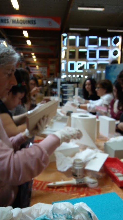 Podéis ver lo laboriosas que estabamos pintando cada una de forma distinta nuestras cajitas, hay nenas chiquitas, mamis y papás, también yayis, las manualidades son para todos!! no hay sexo ni edad, tooodos tenemos destreza e imaginación!! nunca es tarde para aprender cosas nuevas!!