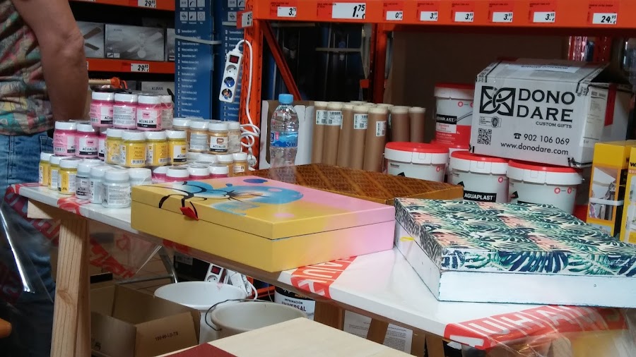 Pero aquí os dejo una entrada de una cajita supercuqui que hice con mi sister en un taller de Bauhaus, me encanta Bauhaus!! no sé si os ya os lo había dicho, pero si no, os lo vuelvo a repetir, me encaaaanta Bauhaus, jeje!! hacen talleres gratuitos de todo tipo de manualidades, te enseñan a hacer cosas superchulas y sencillas y además muchas de ellas te las puedes llevar a casa, y chicaaaas gratis!! en el Leroy Merlín también los hacen, hice un taller con ellos, ya haré una entradita para que lo veais.