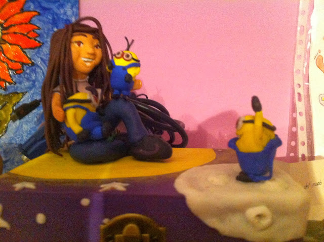 Esta cajita me la encargó Laura para su amiga Lidia a la que le encantan los "Minions". Por dentro lleva una foto de las dos y una frase sacada de una canción que eligió Laura: "Que tu luz brille por siempre porque tu te lo mereces".