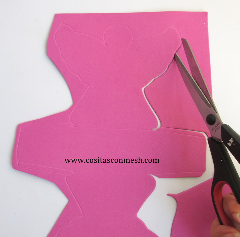 3.- Ahora cortamos el foami, siempre que trabajes con foami usa una tijera que solo uses para cortar este material.