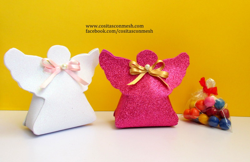 Cajitas de angelitos en foami para bautizos y primera comunión