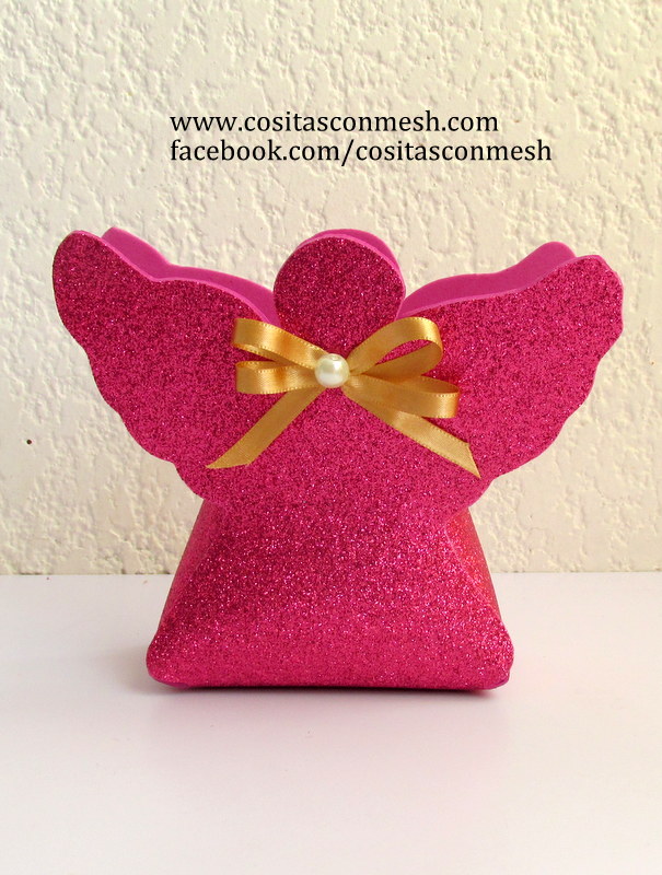 Hola amigos, gracias por acompañarme el día de hoy con una nueva manualidad, y he de contarte que me puse a elaborar unas cajitas con forma de angelito, son perfectas para bautizos y primera comunión, por lo general estas cajitas se suelen hacer con cartulina decorada o papel de scrapbook, pero yo los estuve haciendo en foami " Goma eva " diamantado, los puedes hacer del color que desees, en blanco, rosita, azul etc. Comparando el costo de la cajita, si lo hacemos en foami sale mucho más económico, y quedan muy bonitos. Los moldes te los dejo para que los imprimas en papel tamaño carta, lo transfieras sobre el foami, dobles y pegues, esta muy fácil de hacer esta cajita angelito, y para decorarlo puedes usar moñitos de listón o mini decenarios, ya es cuestión de gustos y presupuesto. Ahora te dejo el paso a paso, espero que te guste y lo compartas con tus amigos que necesiten de este tipo de cajitas para un bautizo o primera comunión.