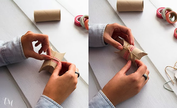 La encontré verdaderamente original. Una cajita para regalos totalmente DIY con el rollo de papel higiénico. Y encima queda tan bonita....