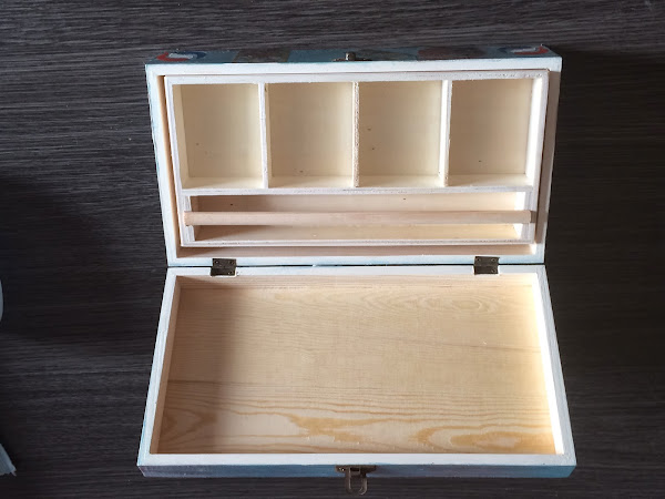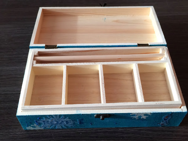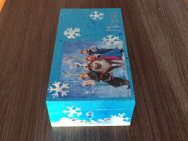 Otra compañera de trabajo me pidió una caja para el cumpleaños de su sobrina, la queria con compartimentos extraibles para poder guardar sus pulseras. La temática tenía que ser de la pelicula frozen y el fondo azul. Este fue el resultado