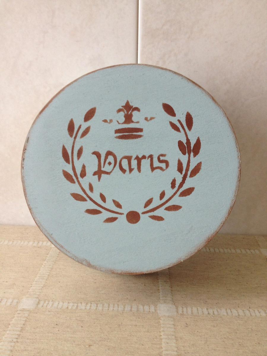 Plantilla de París ( como no…), con el marrón chocolate de las pinturas de acabado tiza. Con esponjita de maquillaje mas bien húmeda.