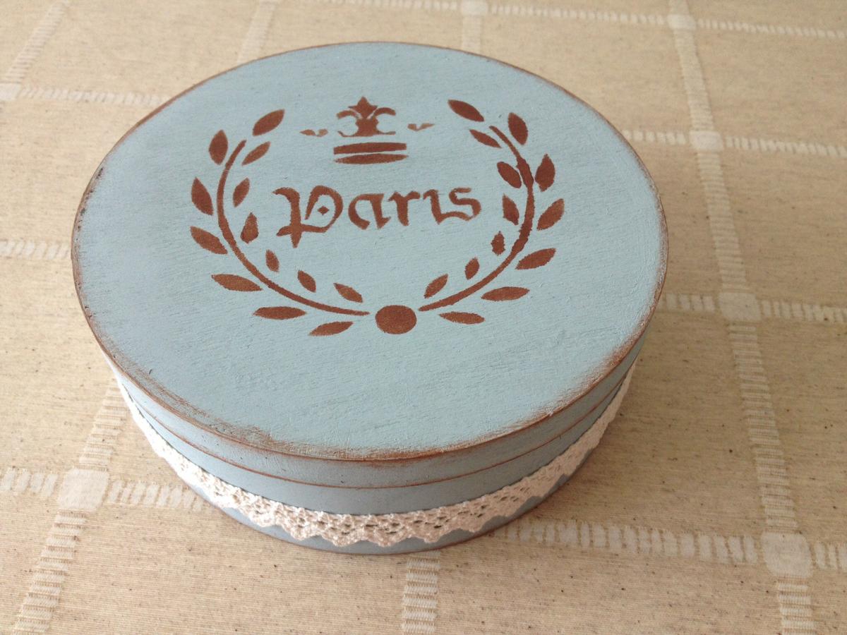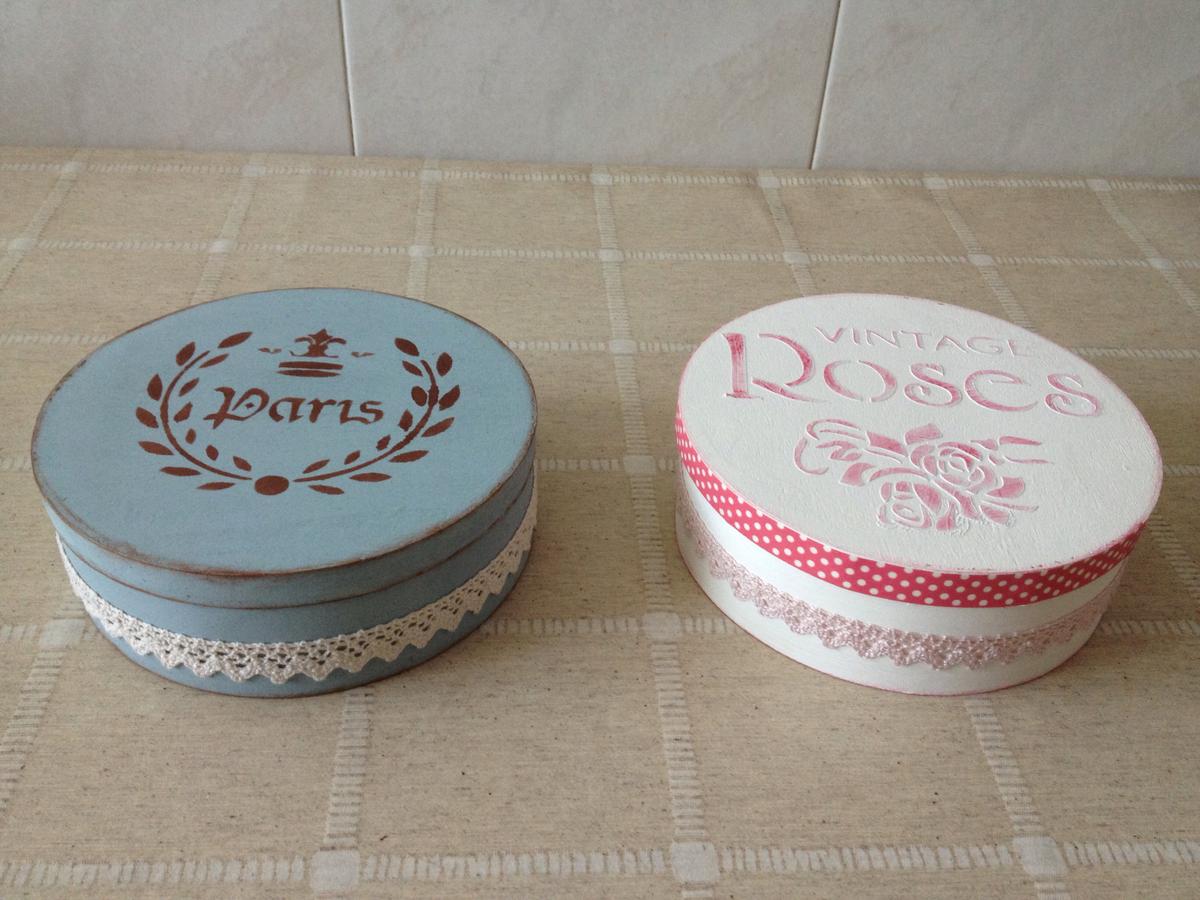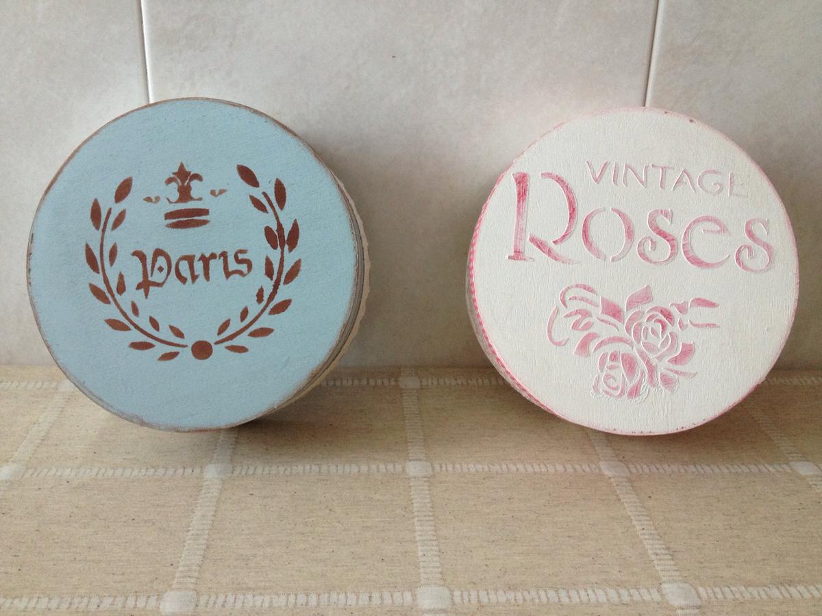 Archivado en: A cerca de Tagged: cajas, cajas redondas, ceras de estarcir, estarcido, estarcido con relieve, madera