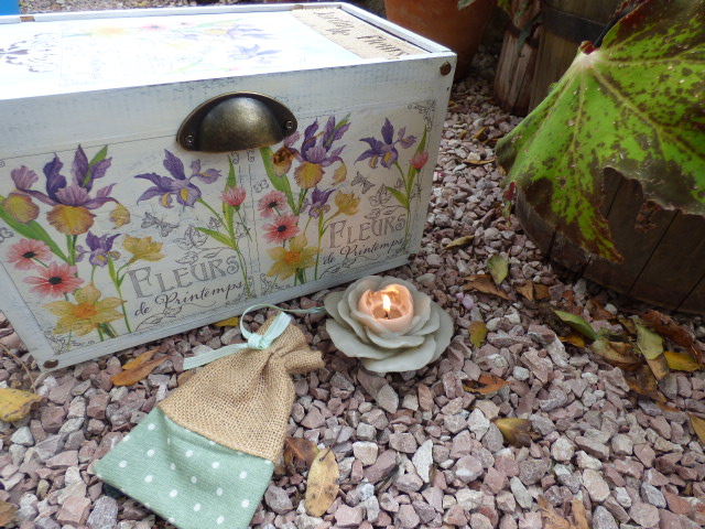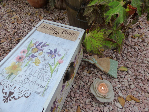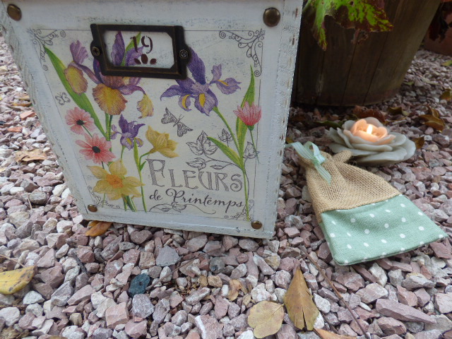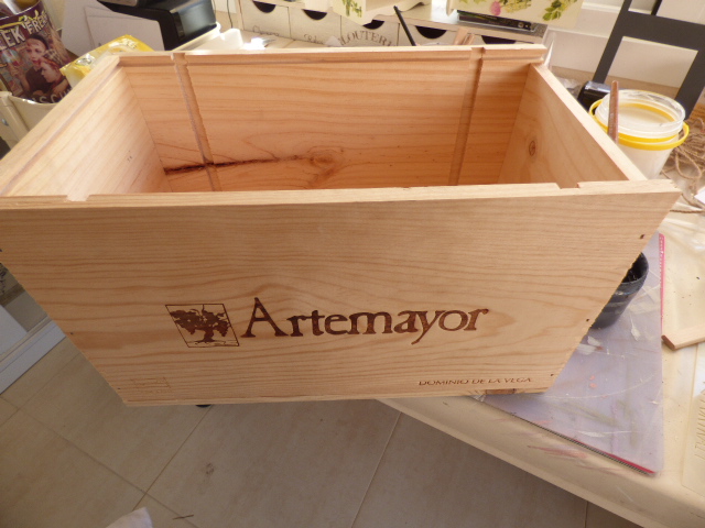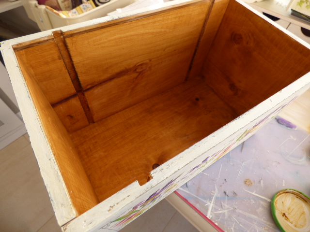 En esta foto se distinguen las letras que llevaba talladas la caja.....no me gusta nunca rellenar esas letras con pasta para disimularlas....es más....lo que me gusta es que se transparenten bajo el decapado y bajo las servilletas .....