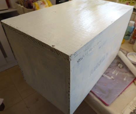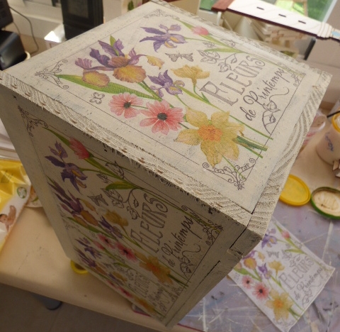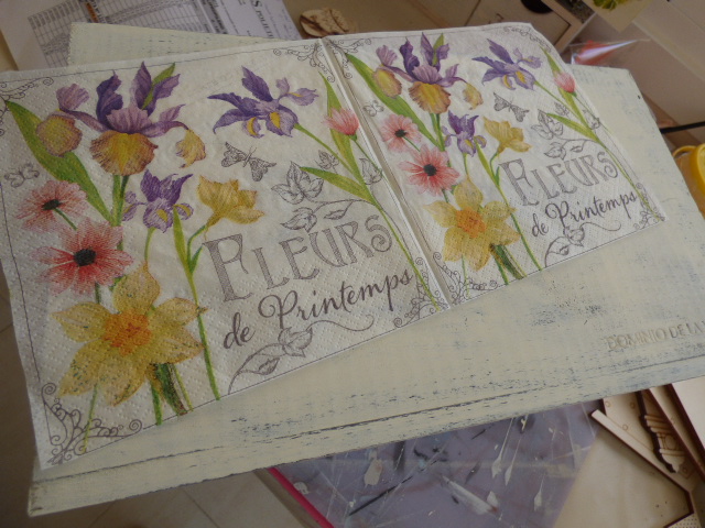 Fui poniendo con cola de decoupage los cuartos de la servilleta por todas las caras del cajón