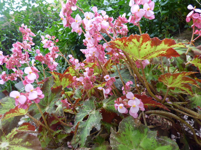 Como cada primavera mi Begonia de Galicia, como yo la llamo, me regala montones de flores de ese tono rosa tan precioso. Ya ni sé los años que hace que estuvimos alli en Galicia pasando una semana en verano......más de 10 o 12 años seguro¡ Allí me dieron una pequeñita maceta con esta planta....era mini, mini. Al llegar a casa la trasplanté y ha ido creciendo año a año como una loca. He regalado esquejes, he hecho con ella nuevas plantaciones cortando apenas un tallo....y siempre prende bien, la única "pega" que tiene es que sólo florece ahora en primavera....pena que no esté todo el verano en flor....pero bueno, ya sólo sus hojas variegadas la hacen súper especial durante todo el año.