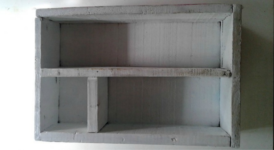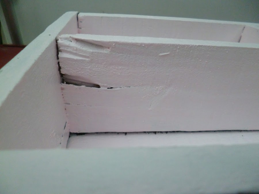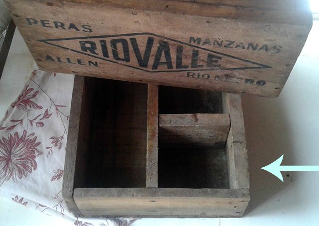 La madera como te decía es bastante rústica, como corresponde a un cajón de frutas,tuve que lijar bastante para no cortarme con las astillas cada vez que lo agarraba.