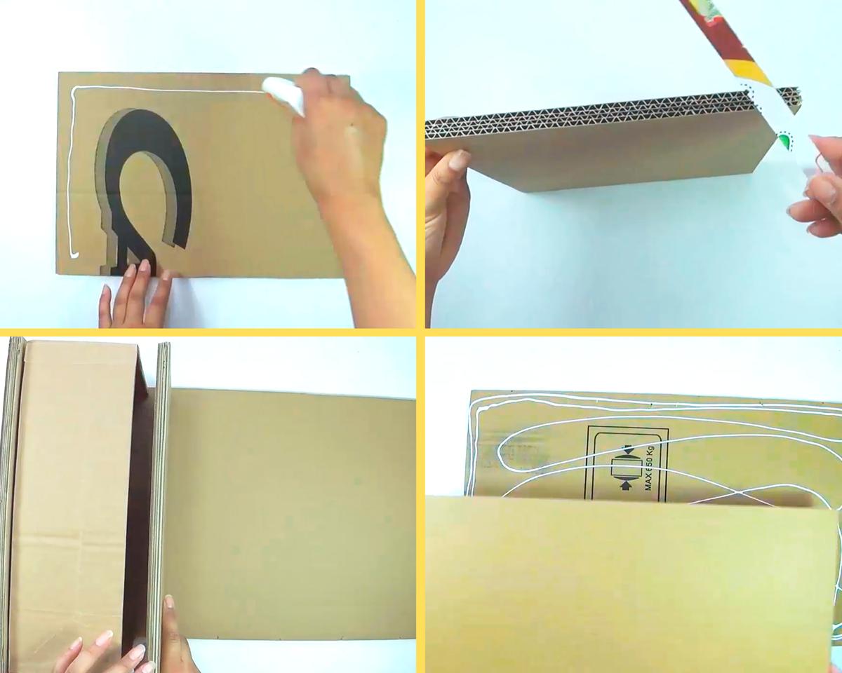 Refuerza la base de las cajas con un rectángulo de cartón.