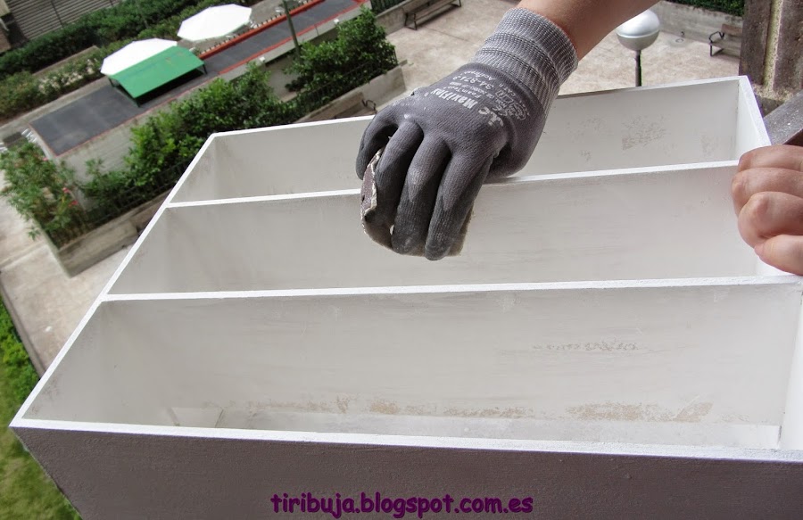 Imprimación blanca a todos los cajones y al armazón, dejar secar y dar otra capa.