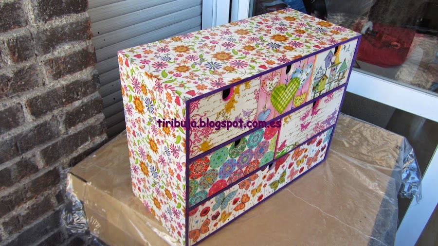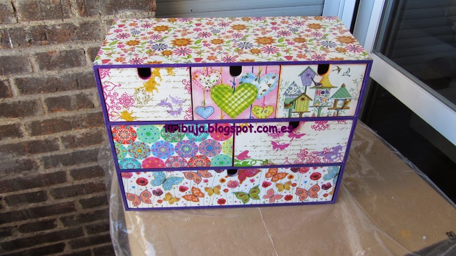 Esto era una cajonera típica de Ikea hasta que por arte de magia se convirtió en esta preciosa cajonera de colores. Hecha con diferentes servilletas en cada cajón y cada uno de un color diferente.
