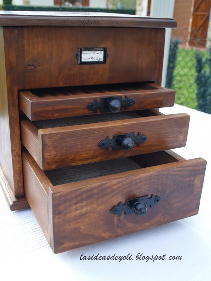 Os dejo las fotos de esta cajonera preciosa para caligrafía, que de nuevo a realizado mi marido y decoramos entre los dos.