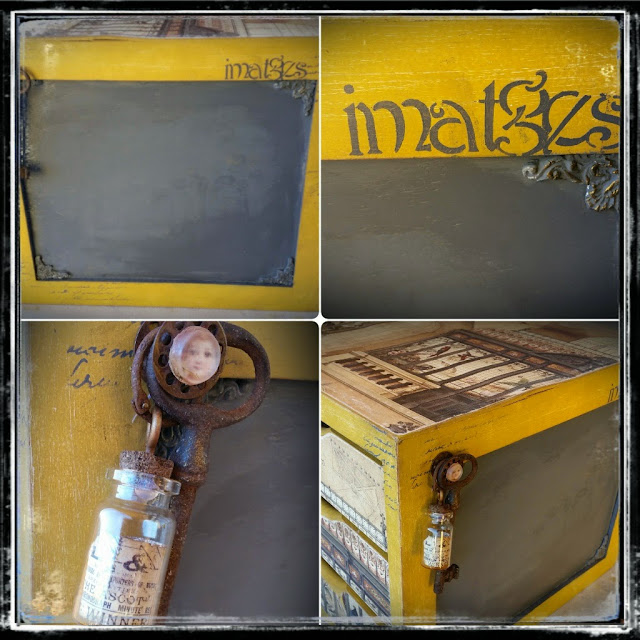 El resultado es un mueblecito la mar de funcional; cajones para mis papeles (acetatos, vegetales, acuarela, lijas, sobres ), para mis herramientas de dibujo, postales...