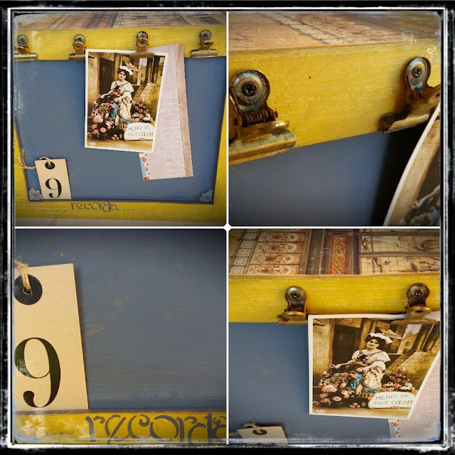 Además en uno de los lados unas pinzas para poner notas y papeles que mucgas veces se pierden en el caos de mi mesa, y en el otro, un lugar algo similar a un marco de fotografías,con molduras, para colocar imágenes inspiradoras que me apetezca tener a la vista y cambiarlas cuando me canse.
