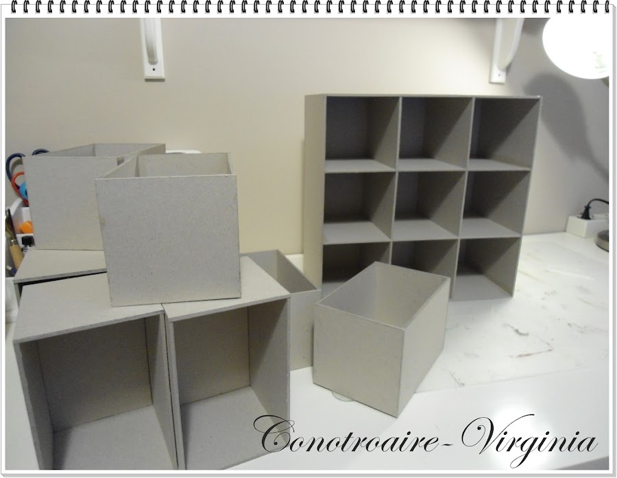 Aquí podéis ver toda la estructura, el cuerpo con las separaciones y los 9 cajones, la verdad que me llevo un ratito, ja,ja,ja....cada cajón tiene 10 cm ancho por 10 cm de alto por 15 cm de largo, así que en conjunto la cajonera tiene una medida considerable.