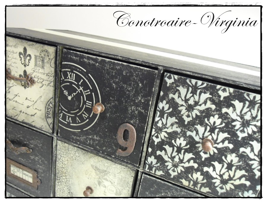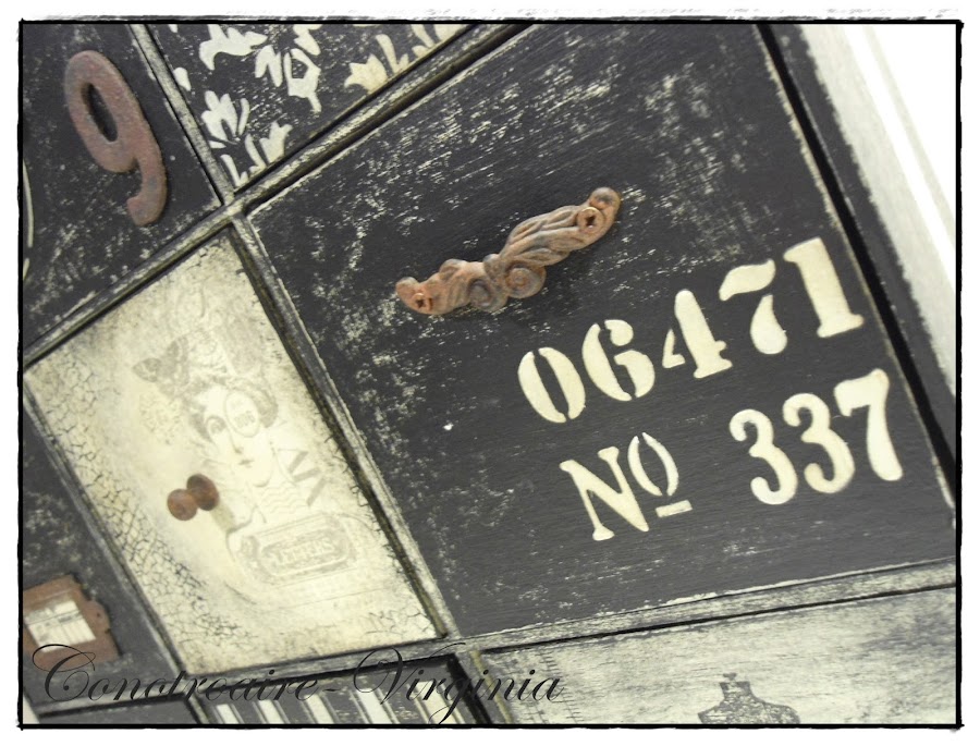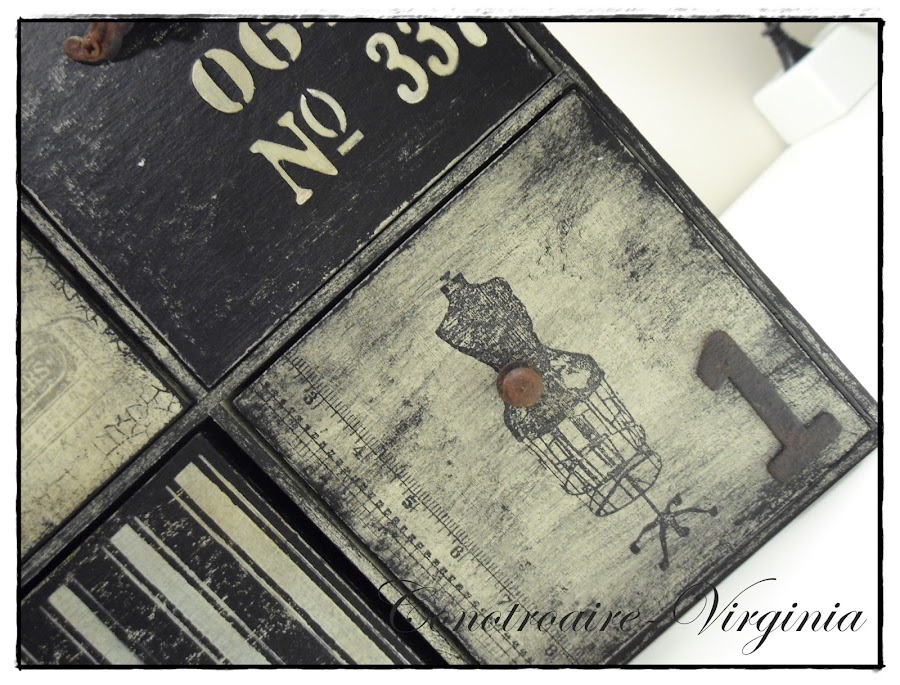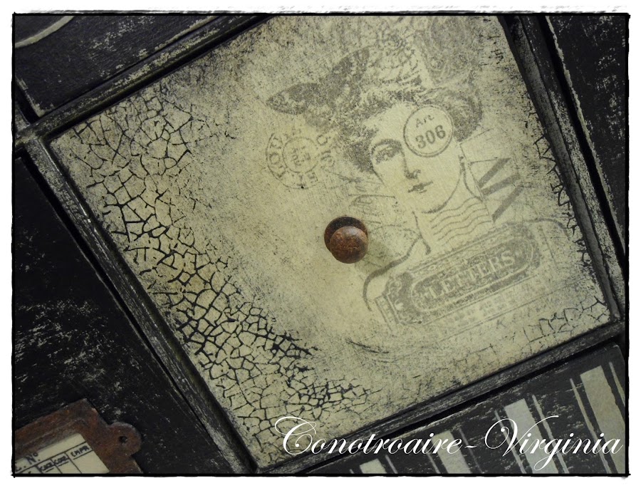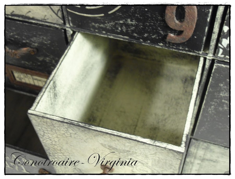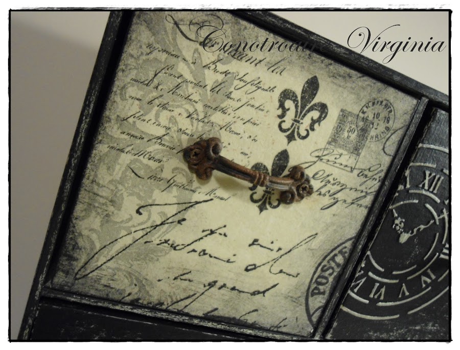 Cada cajón va decorado distinto.........este es decoupage con una servilleta.