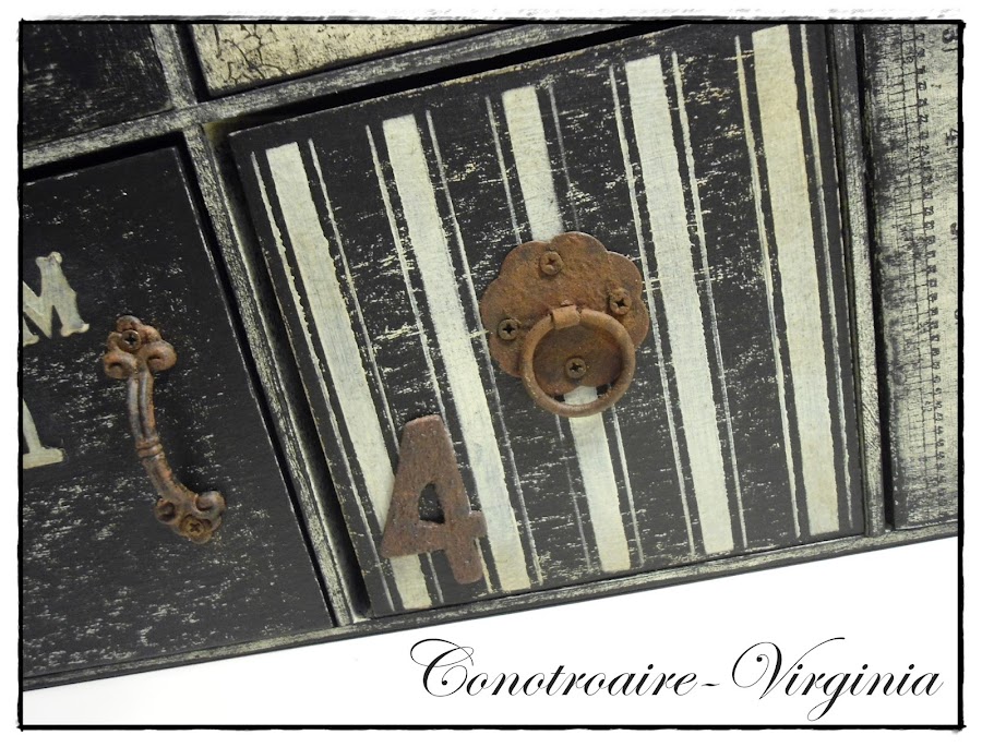 El interior de los cajones los he envejecido a pincel seco con el color negro.