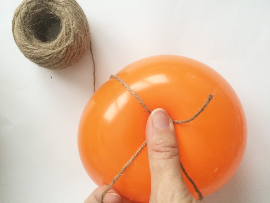 Atamos el extremo de la cuerda en el nudo del globo y, con la misma técnica del post del lunes, pasamos la cuerda dando forma de calabaza. Tendréis que apretar un poco para que se quede "achatada".