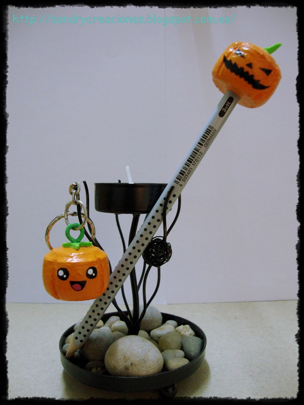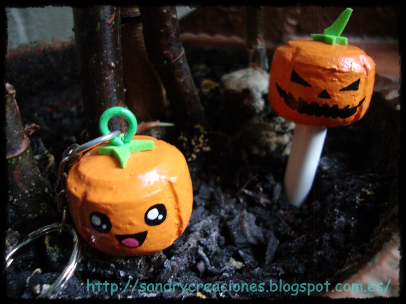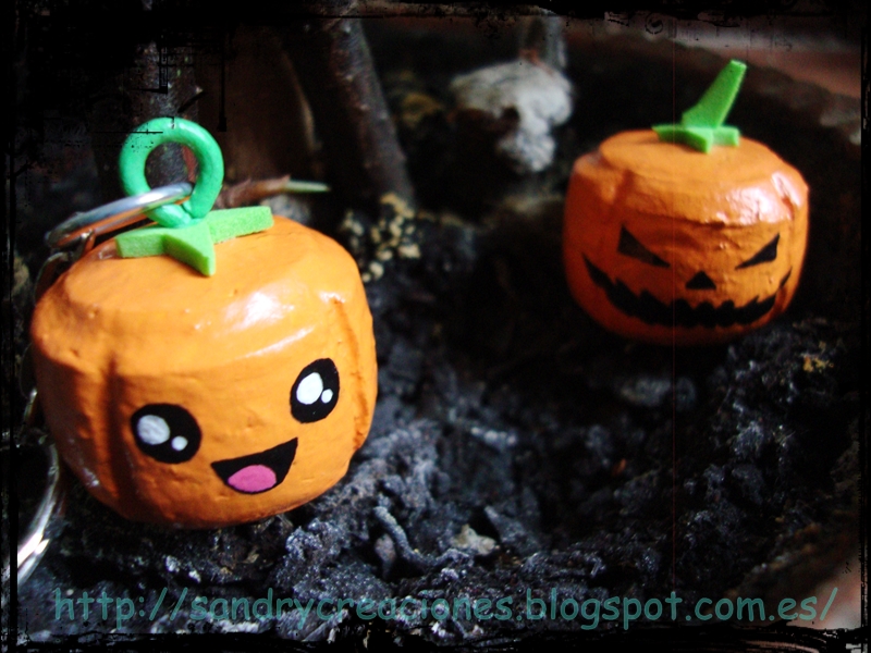 Con poco material y pocos pasos se consiguen un par de calabazas que quedan muy bonitas como llavero, adorno, etc...