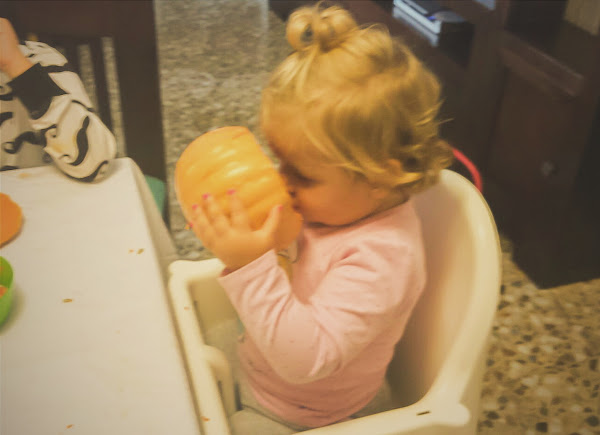 Nuestro Galochito se lo paso "Pipa" vaciando y jugando con las tripas de la calabaza.