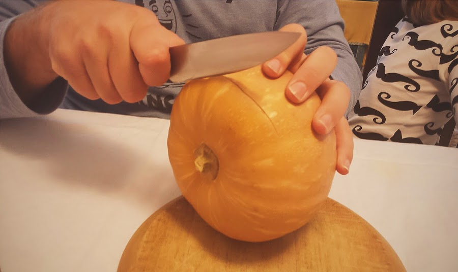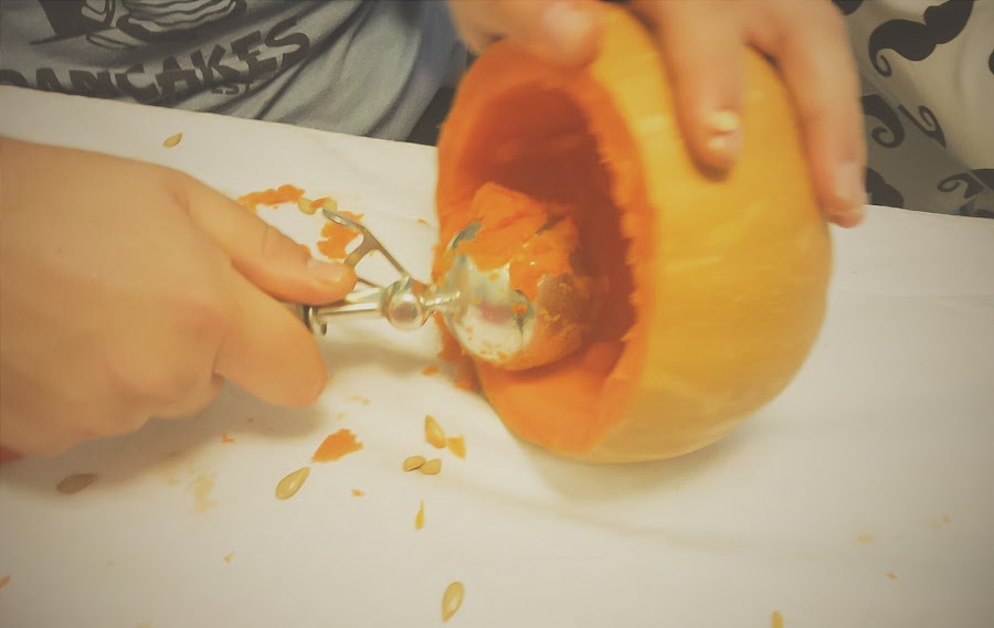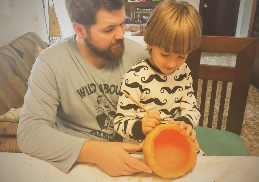 Hoy nos lo hemos pasado pipa (de calabaza) preparando nuestras calabazas de Halloween, igual que vemos en esas películas americanas que tanto nos gustan.