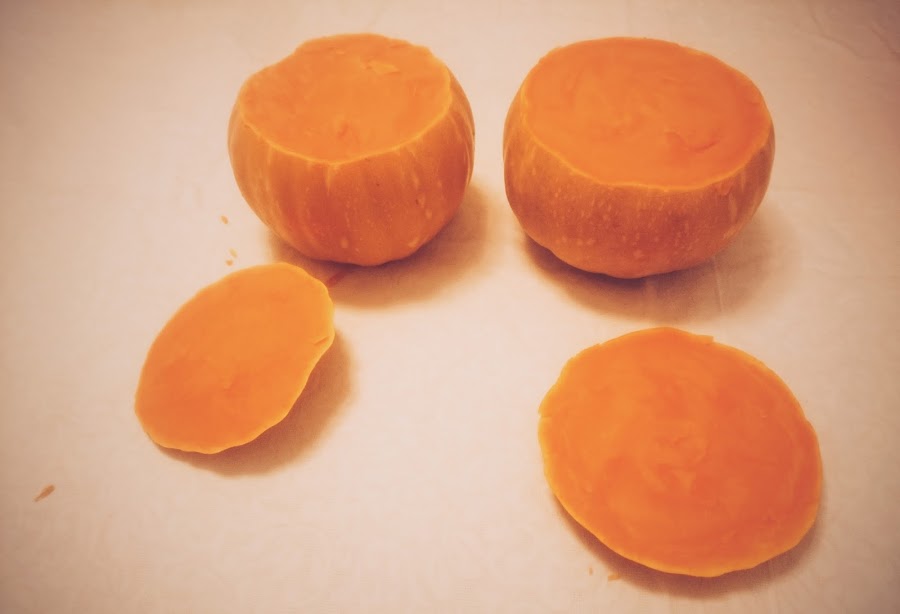 Estas son nuestras calabazas, nosotros las hemos conseguido en el Lidl. Se suponen que son especiales para Halloween, pero se ve que ni eran tan naranjas como las de las películas, ni tan maduras, por lo que estaban algo durillas.