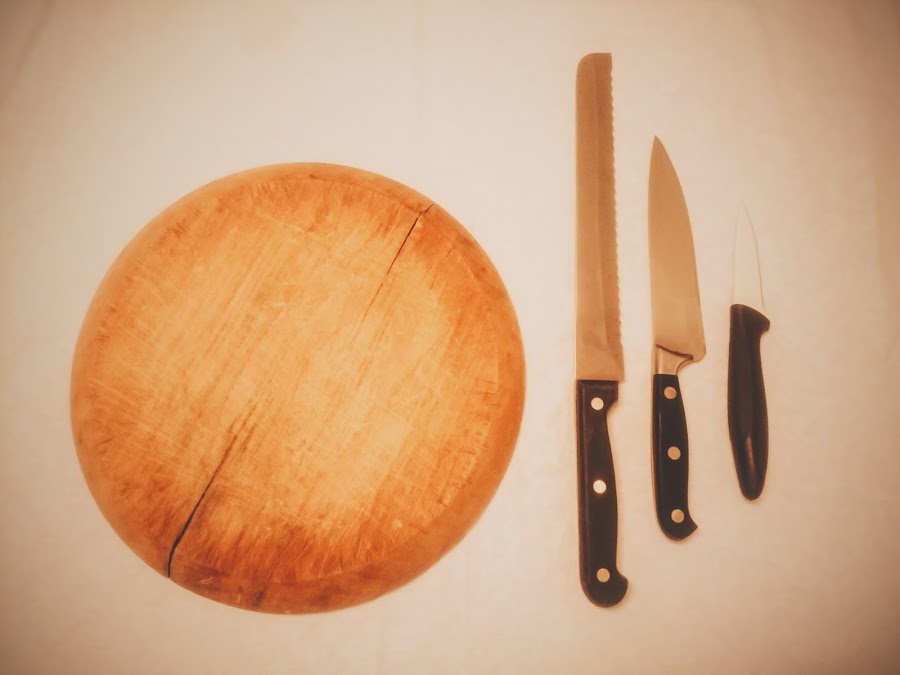 Para cortar nuestras calabazas, hemos utilizado varios cuchillos y una tabla para cortar.