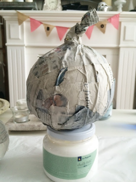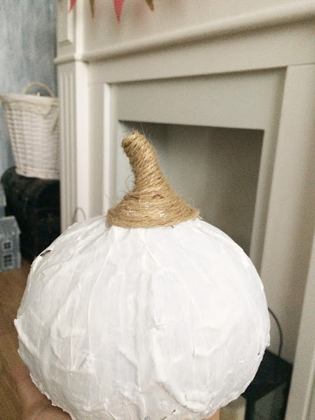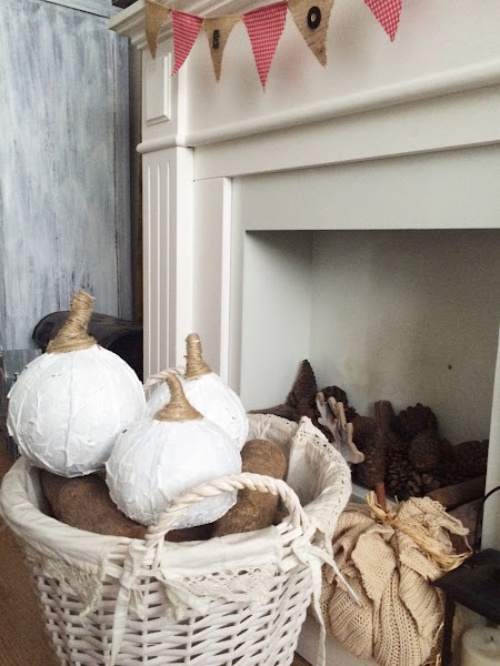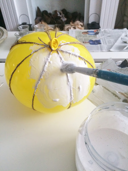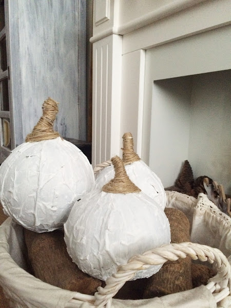 Parece que vivo obsesionada con ellas, je je, pero envidio esos campos llenos de calabazas donde uno va a elegir y comprar la suya y si ya es un campo lleno de calabazas más blanquitas, mi adoración es total. Como aquí no es fácil encontrar calabazas (más que en el súper, y gracias) y menos aún blancas, se me ocurrió hacer unas que fueran bien con la deco de mi chimenea y con las sweater pumpkins que publiqué aquí el lunes (podéis ver el DIY completo aquí).