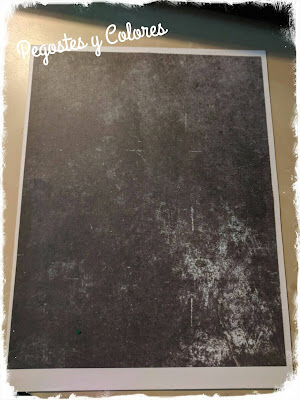 Y claro, tapamos la parte de atras, pegue papel de scrapbooking con este diseño negro desgastado.